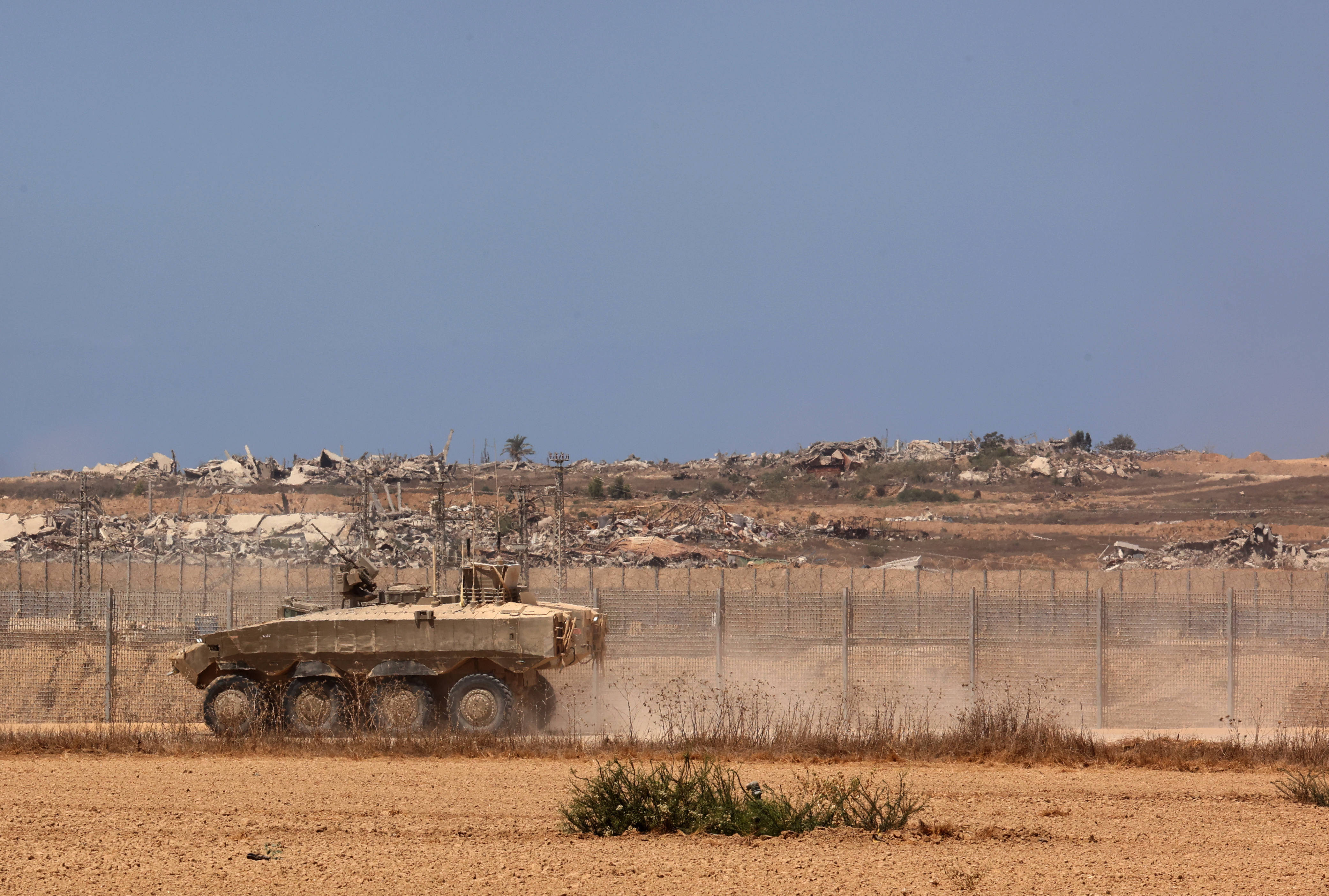 这是8月28日从加沙边境以色列一侧拍摄的以军装甲车。新华社发(吉尔·科恩·马根摄)以军发言人阿维凯·阿德拉伊29日敦促加沙城居民向加沙地带南部方向转移,称撤离是“不可避免的”。