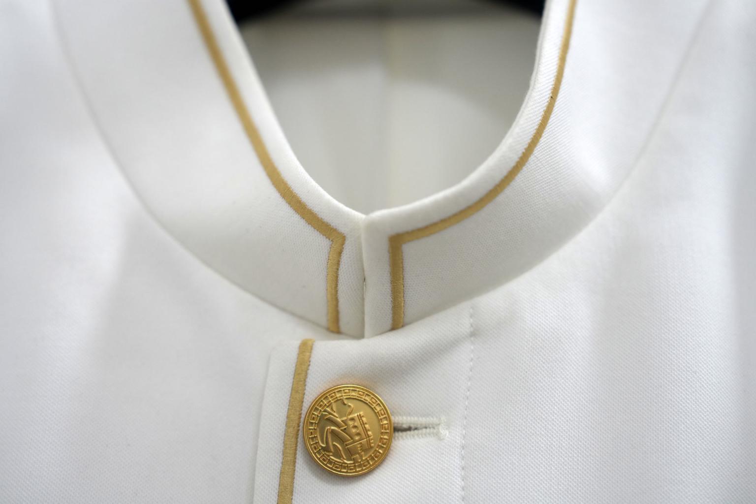 邹游说,在抗战胜利80年后的今天,参与合唱的大学生们需要通过演唱这些歌曲来展现当代年轻人的自信与精气神儿,而演出服装是为他们助力的重要元素。“如果衣服穿着不舒服,表演者的表情、情绪都会受到影响,观众一看就能看出来。”邹游对所有服装的版型精益求精,男合唱队员的裤型修改了无数遍,裤脚的宽窄有严格的尺寸;女合唱队员的裙摆褶数也都经过精心测算;分指挥上衣的腋下区域多设计出一个三角插片,方便抬臂挥动;所有服装的腰背部都设计了小口袋,便于携带和隐藏耳返设备;演出鞋用上3D打印技术,看上去是皮鞋款式,但鞋底如同运动鞋般舒适;服装的材质经过重重测试,具备排湿、透气、防晒等功能,即便是烈日当头大汗淋漓,衣服上也不会出现大片汗渍……
